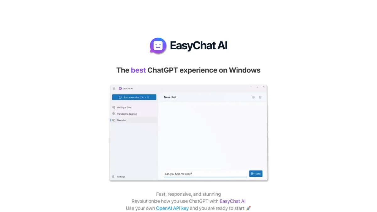 EasyChat AI offers a fast, responsive, and visually stunning interface for an enhanced ChatGPT experience on Windows, perfect for everyday users and professionals alike.