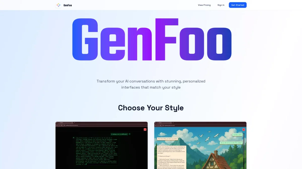 GenFoo offers personalized chat interfaces that enhance AI interactions, allowing users to choose themes that reflect their unique style and workflow seamlessly.