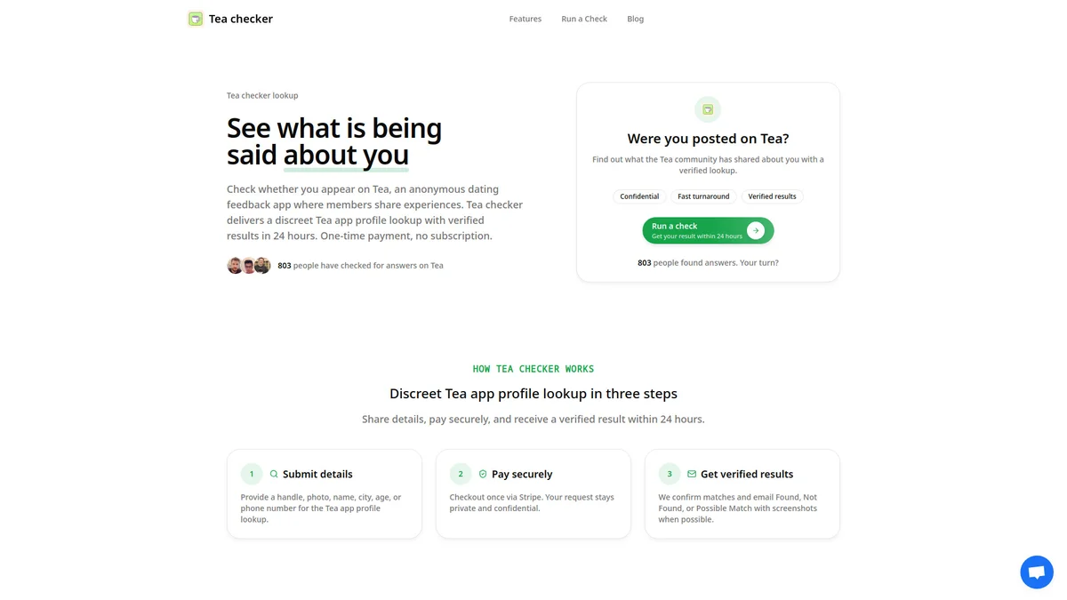 Tea checker provides discreet profile lookups on the Tea app, offering verified results within 24 hours to help protect your online reputation.