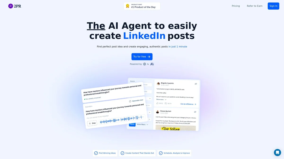 Generate engaging and authentic LinkedIn posts in just one minute using AI-driven insights and trending topics tailored to your profile.