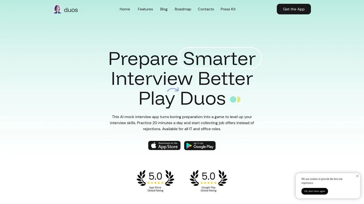 Duos AI transforms interview preparation into a game, offering realistic mock interviews to boost your confidence and skills in just 20 minutes a day.