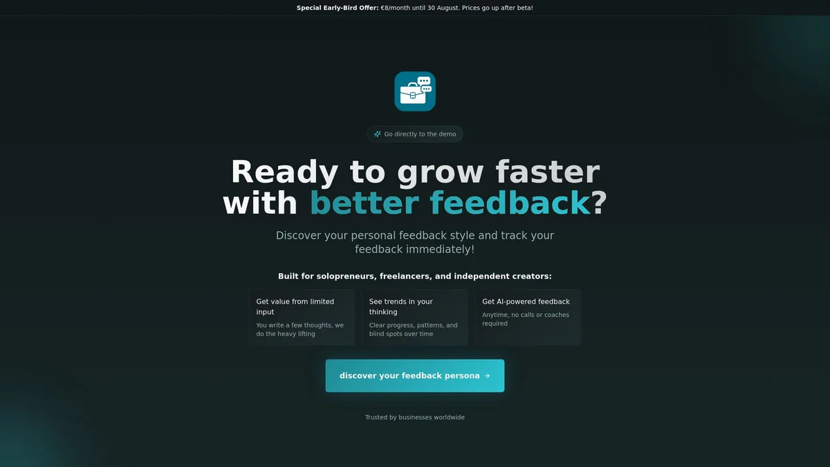 Feedback Kit is designed for solopreneurs, freelancers, and creators, streamlining the feedback process to enhance collaboration and improve product development.