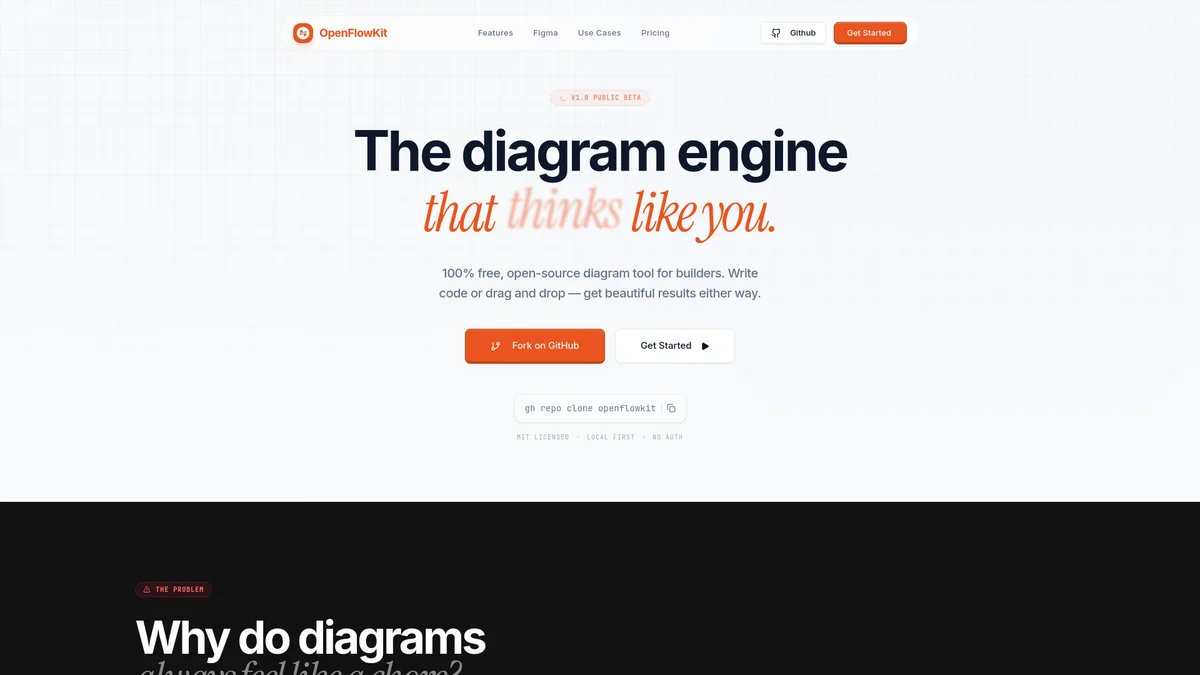 OpenFlowKit is a free, open-source diagram tool designed for developers to create, edit, and share diagrams effortlessly.
