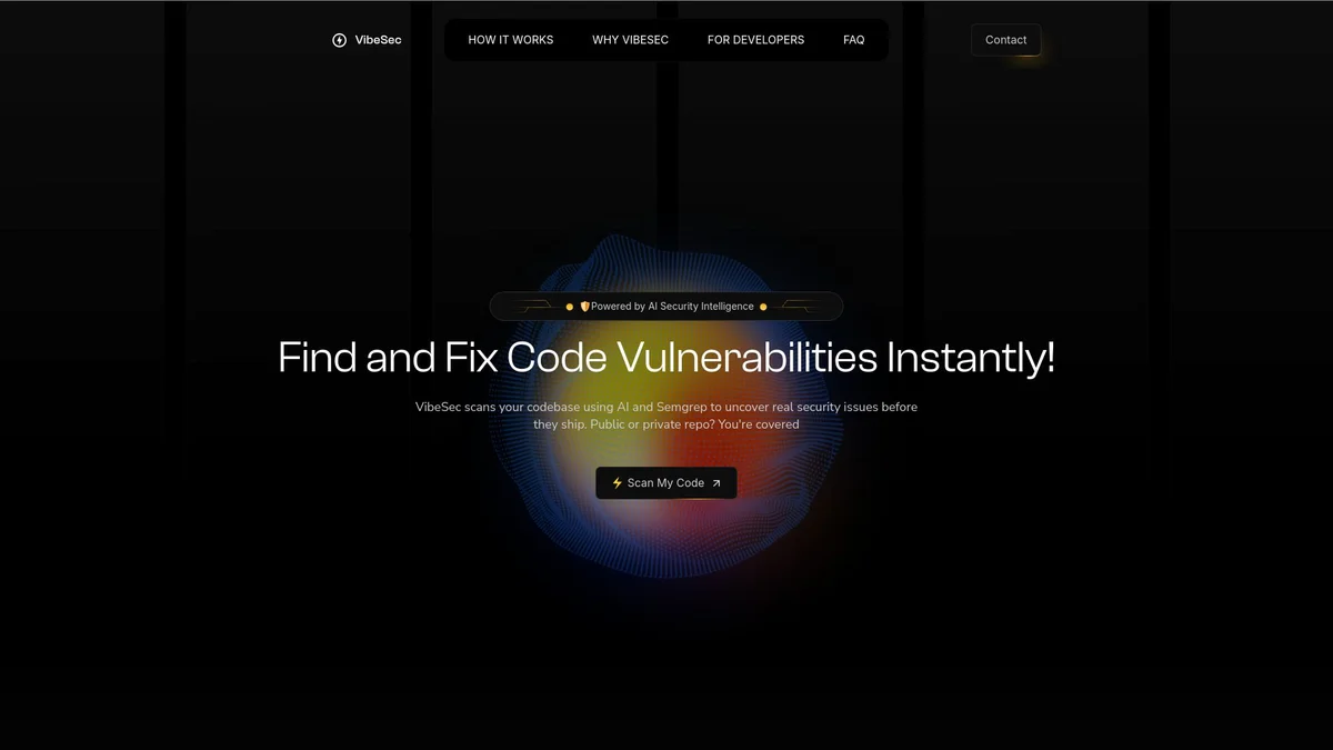 VibeSec scans your codebase for vulnerabilities using AI, providing actionable reports to help developers fix security issues before deployment.