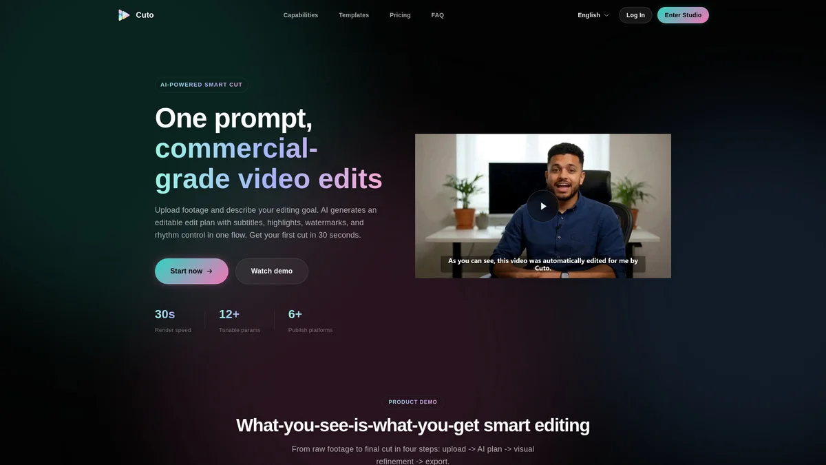 Transform raw footage into professional-grade edits in seconds using AI-driven smart editing features tailored for video creators and marketers.