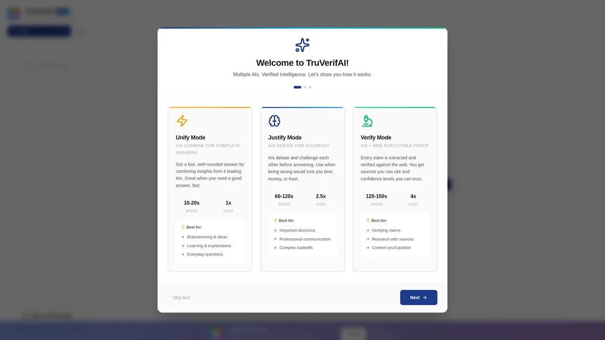 TruVerifAI leverages four AI models to deliver reliable insights and solutions, empowering users to make informed decisions without the risk of error.