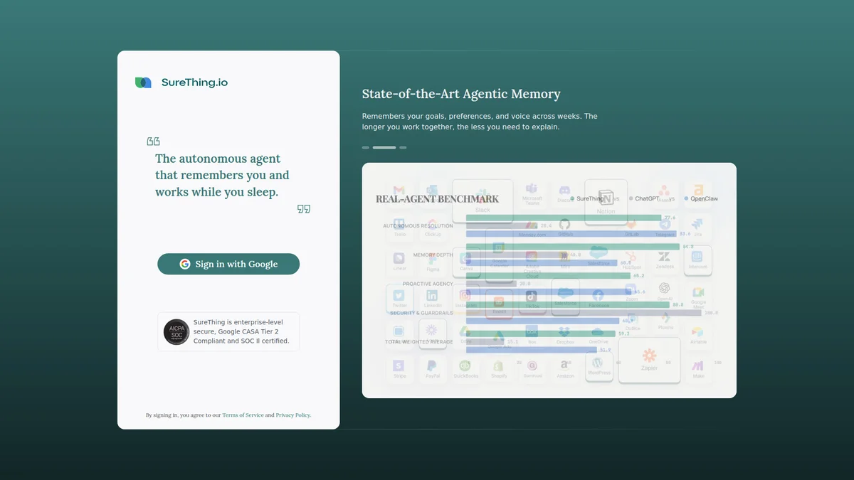 SureThing is an autonomous AI agent that remembers your preferences and works on your tasks while you sleep, enhancing productivity and workflow management.
