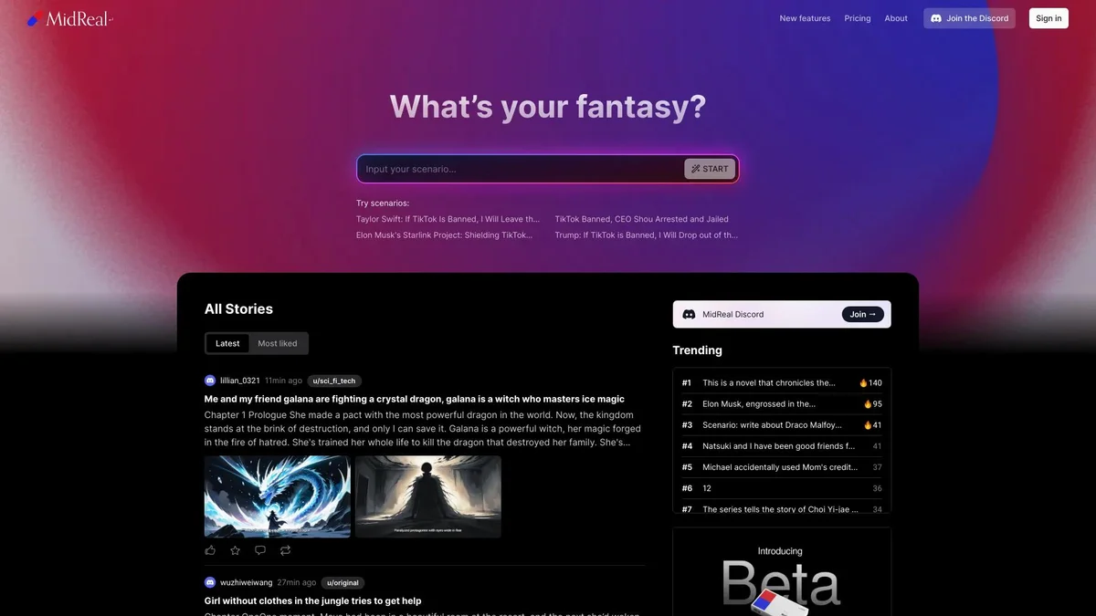 MidReal was a platform that generated engaging stories and personalized messages, providing creative content solutions for users until its transition to Macaron.