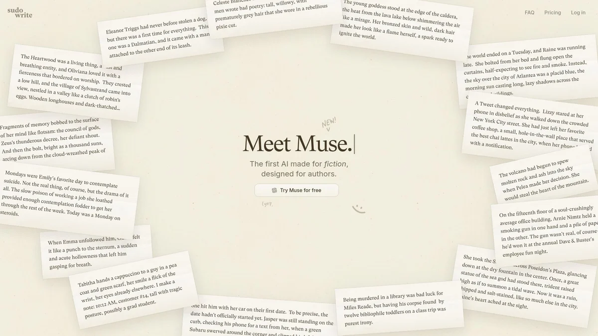Muse by Sudowrite empowers authors with tailored AI tools for creative writing, enhancing storytelling through unique prompts and inspiration tailored for fiction.