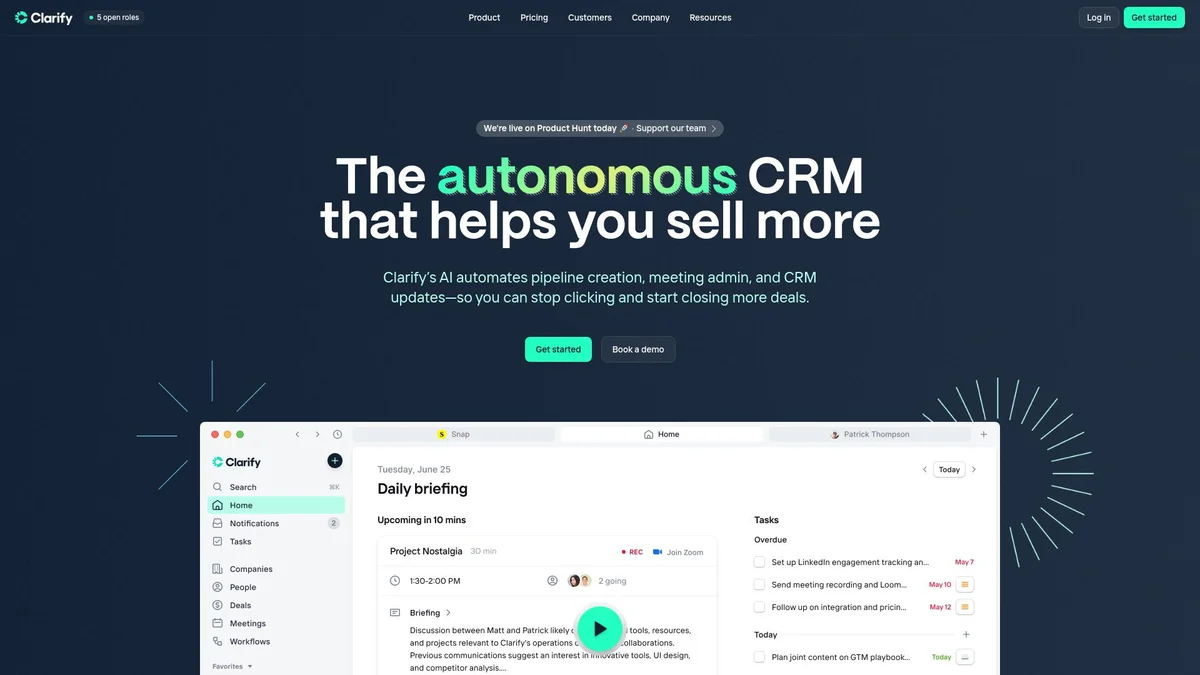 Clarify revolutionizes CRM for startups, automating data entry, managing pipelines, and enhancing sales efficiency, allowing founders to focus on closing deals.