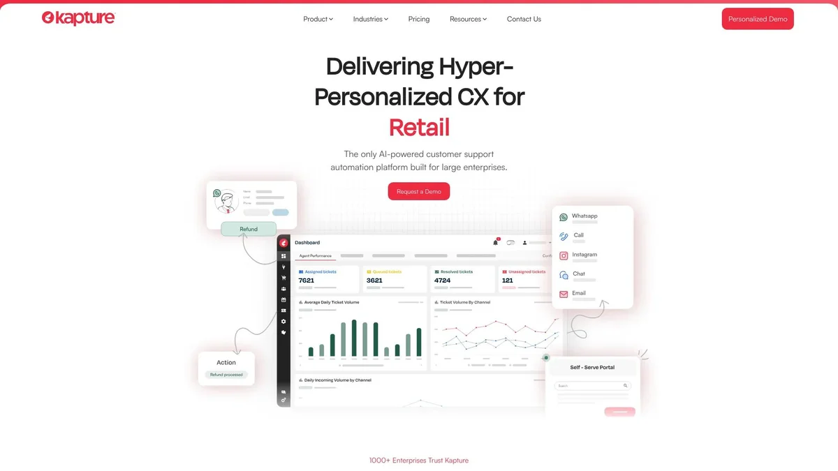Kapture CRM offers an AI-powered customer experience platform that autonomously resolves customer queries through intelligent voice and non-voice agents, enhancing support efficiency.