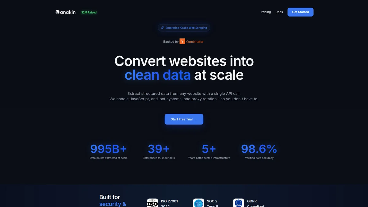 Anakin.io offers a high-speed web scraping API designed to extract data efficiently, catering to various data needs without the hassle of manual collection.