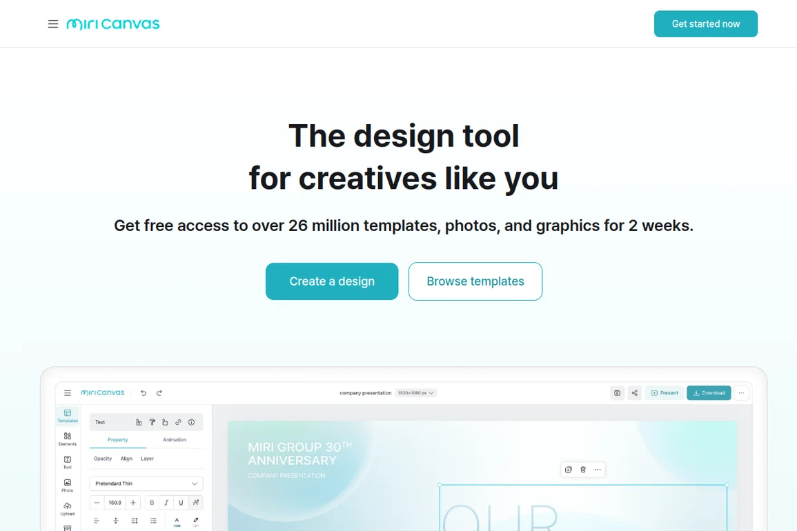 MiriCanvas is a free design tool that offers unique templates and powerful AI features, enabling users to create stunning visuals effortlessly.