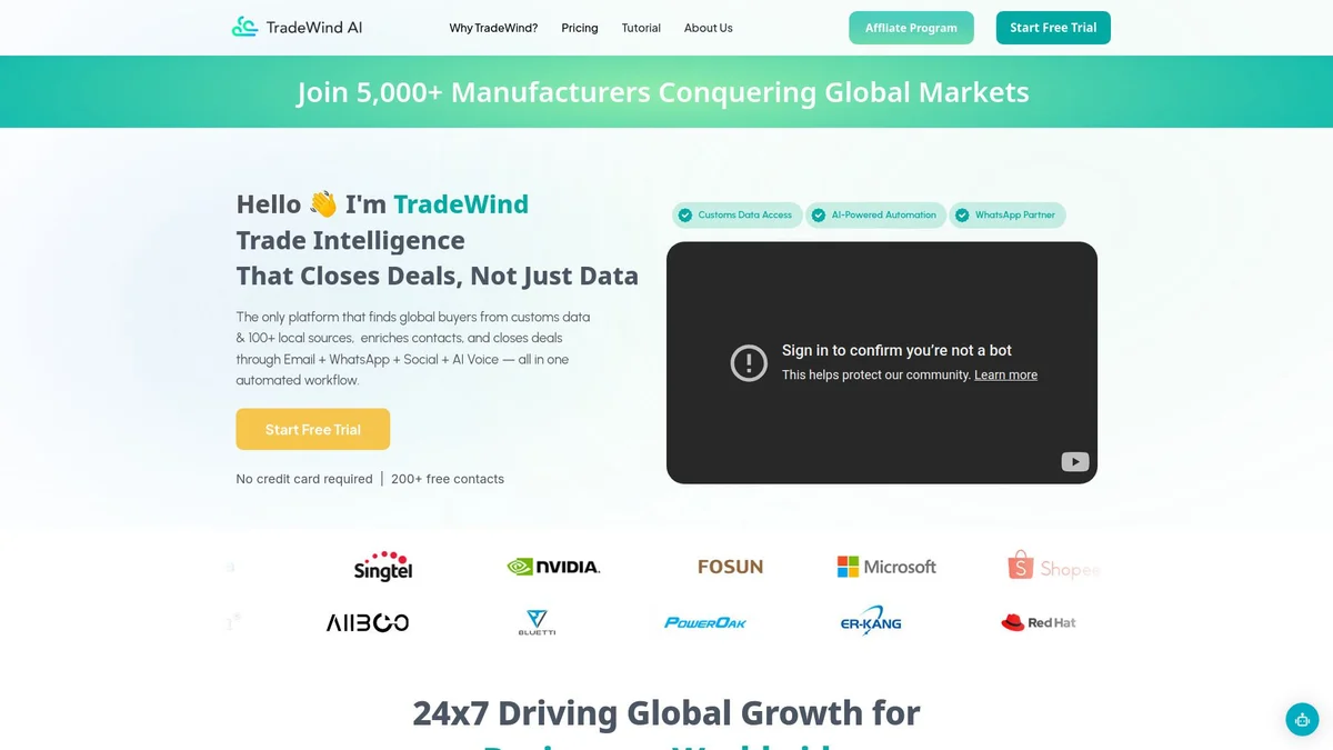 TradeWind AI is a comprehensive platform that identifies global buyers through data insights, automating outreach to close deals efficiently across various channels.