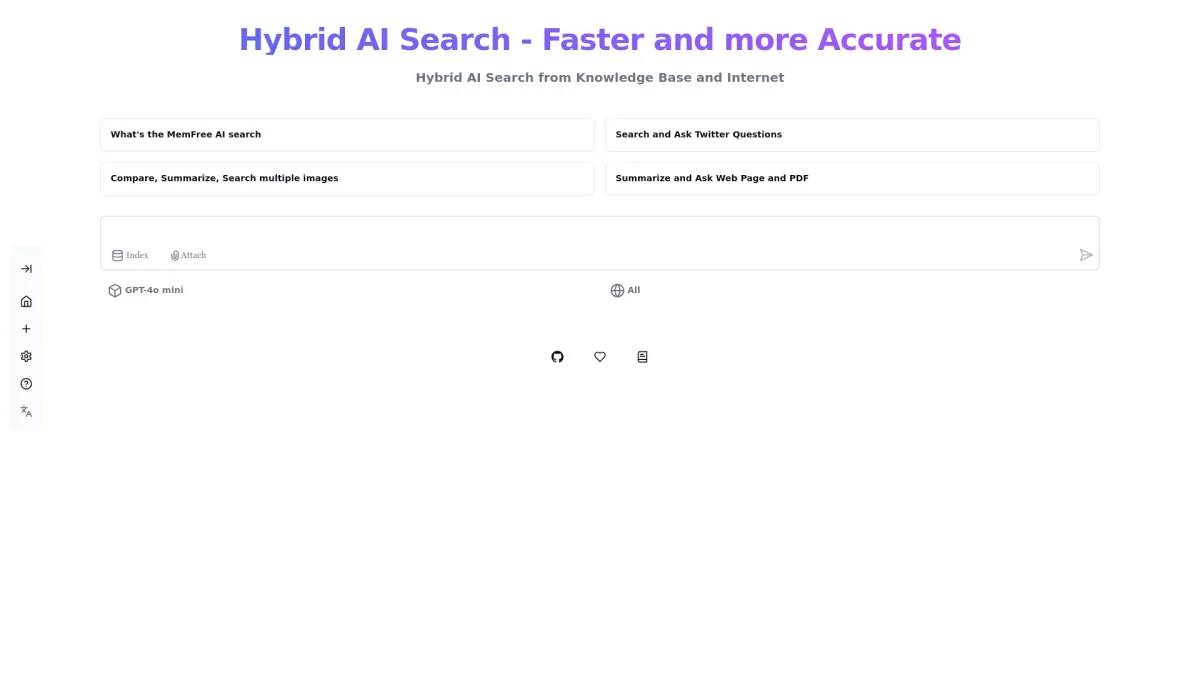 MemFree's Hybrid AI Search Engine combines AI capabilities with advanced search techniques, enhancing user experience by delivering precise and relevant search results effortlessly.