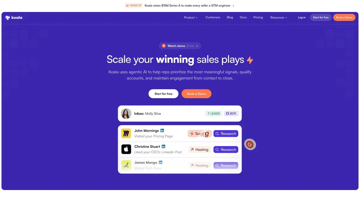Koala leverages agentic AI to enhance sales strategies, helping teams prioritize signals, qualify accounts, and maintain engagement from contact to close.