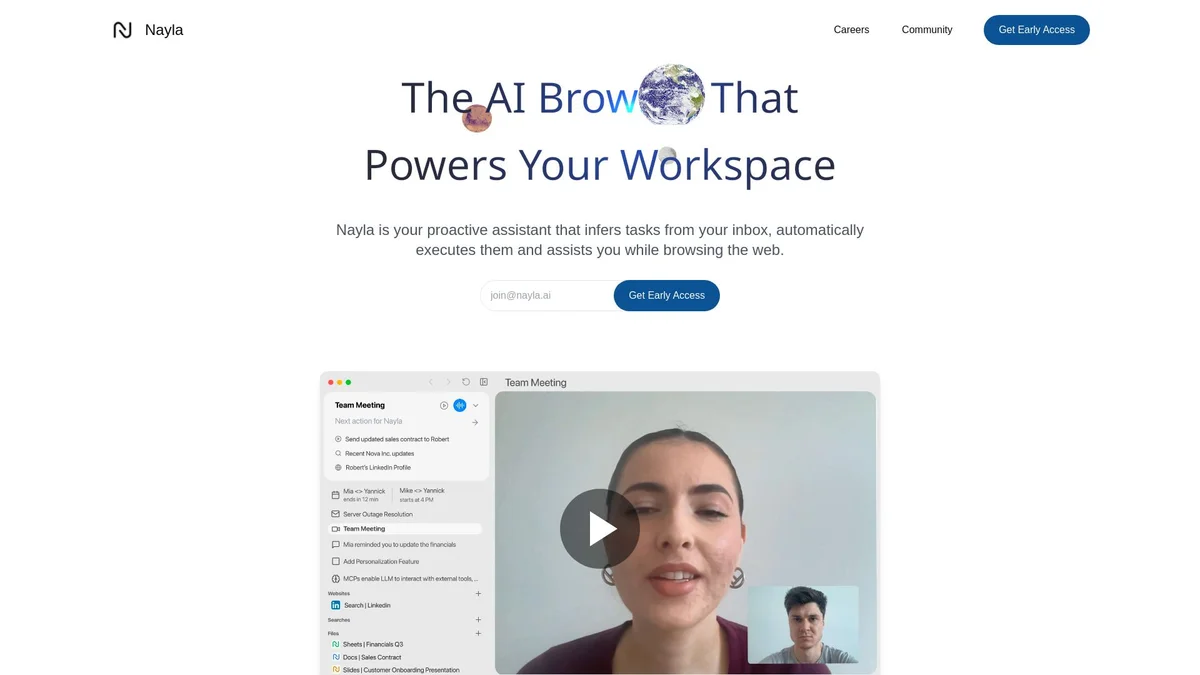 Nayla automates tasks from your inbox, enhancing your browsing experience by executing actions seamlessly while you navigate the web.