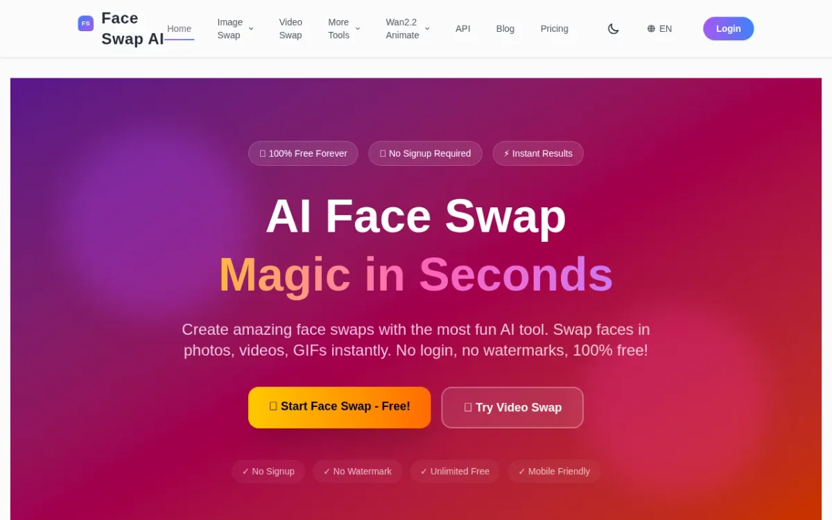 Create stunning face swaps effortlessly with no sign up and completely free. Perfect for entertainment and creativity with photos and videos.