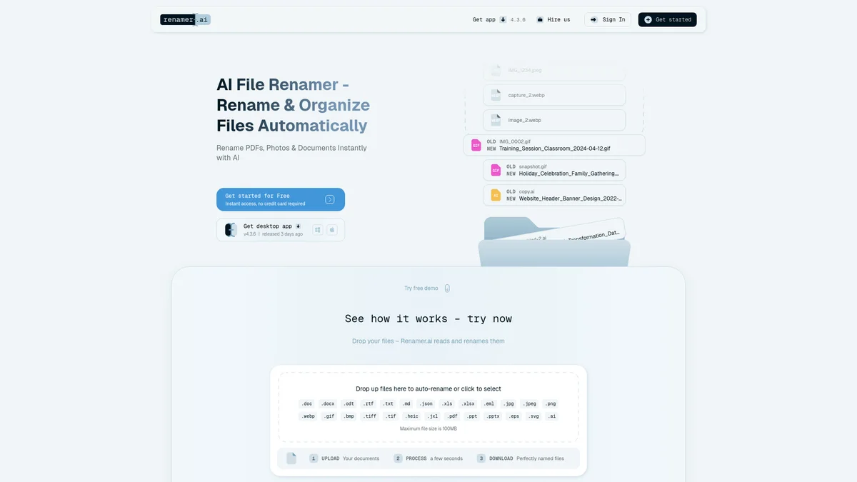 Renamer.ai automates the renaming and organizing of PDFs, photos, and documents, transforming file management into a seamless experience for users everywhere.