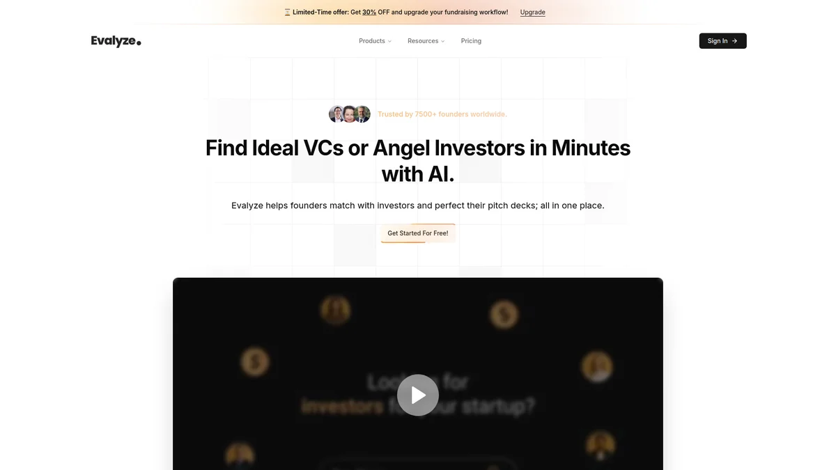 Evalyze AI connects founders with ideal investors and enhances pitch decks, streamlining fundraising for startups globally.