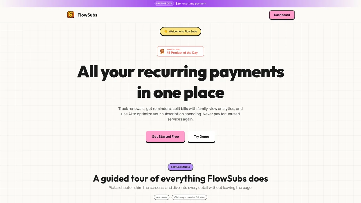 FlowSubs simplifies subscription management, allowing users to track, manage, and optimize their subscriptions seamlessly with intuitive features and automation.