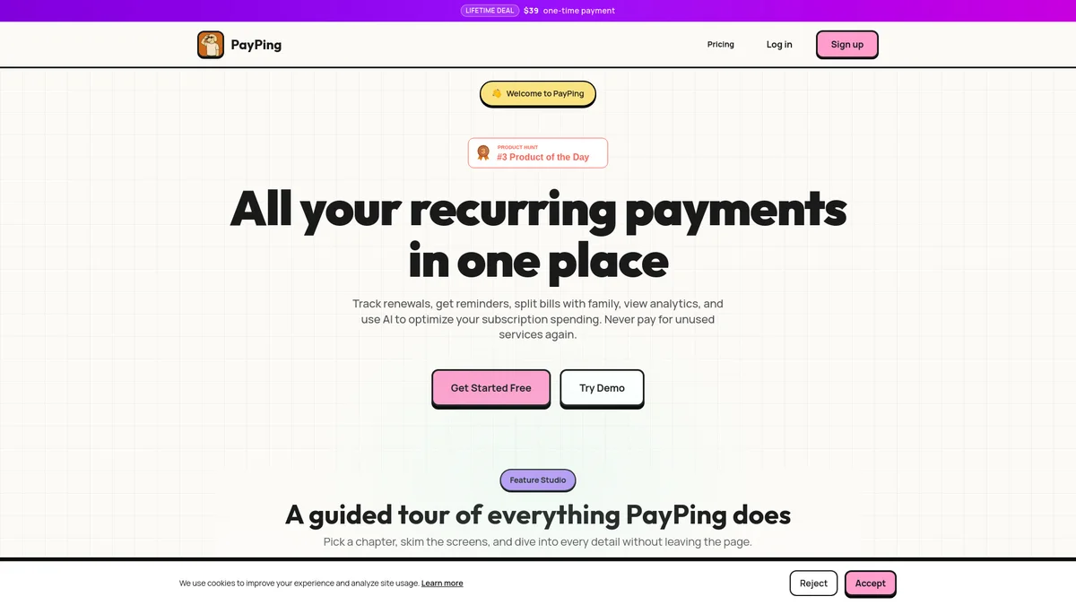 PayPing centralizes your recurring payments, helping you track renewals, get reminders, and optimize your subscription spending effortlessly.