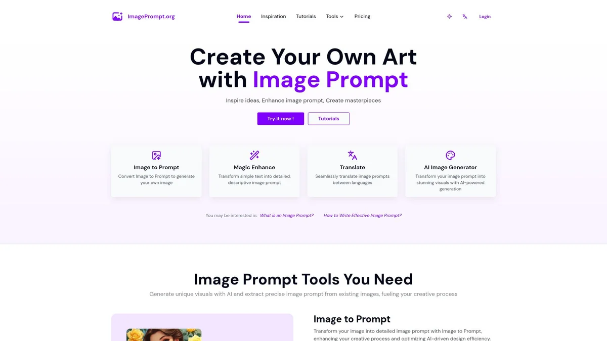 Image Prompt empowers users to create breathtaking AI-generated art, enhancing creativity through detailed prompts and image analysis for an optimized design experience.