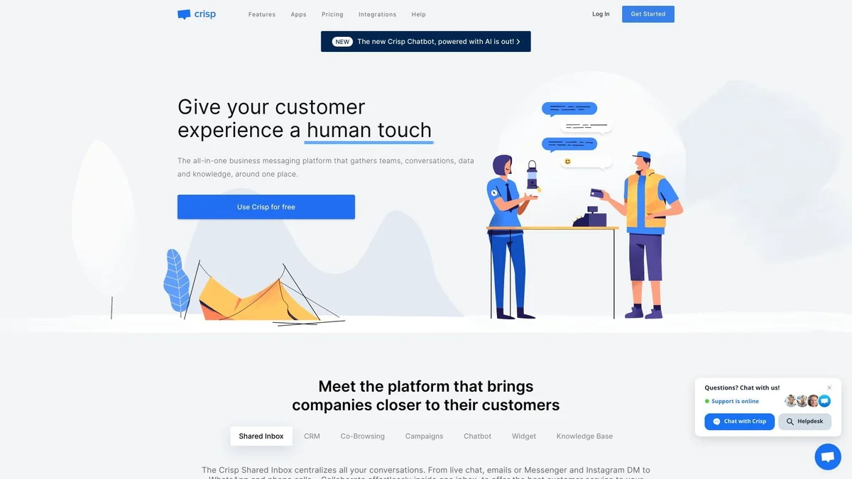 Crisp offers an all-in-one AI-powered customer support suite, empowering teams to automate inquiries and enhance customer interactions seamlessly.
