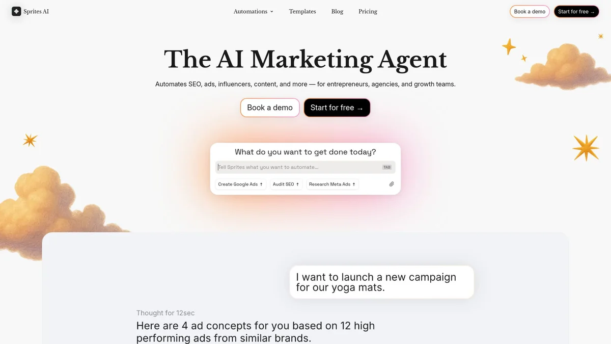Sprites.ai empowers performance marketing teams with AI-driven insights for Google Ads, Meta Ads, and SEO, optimizing campaigns for enhanced results.