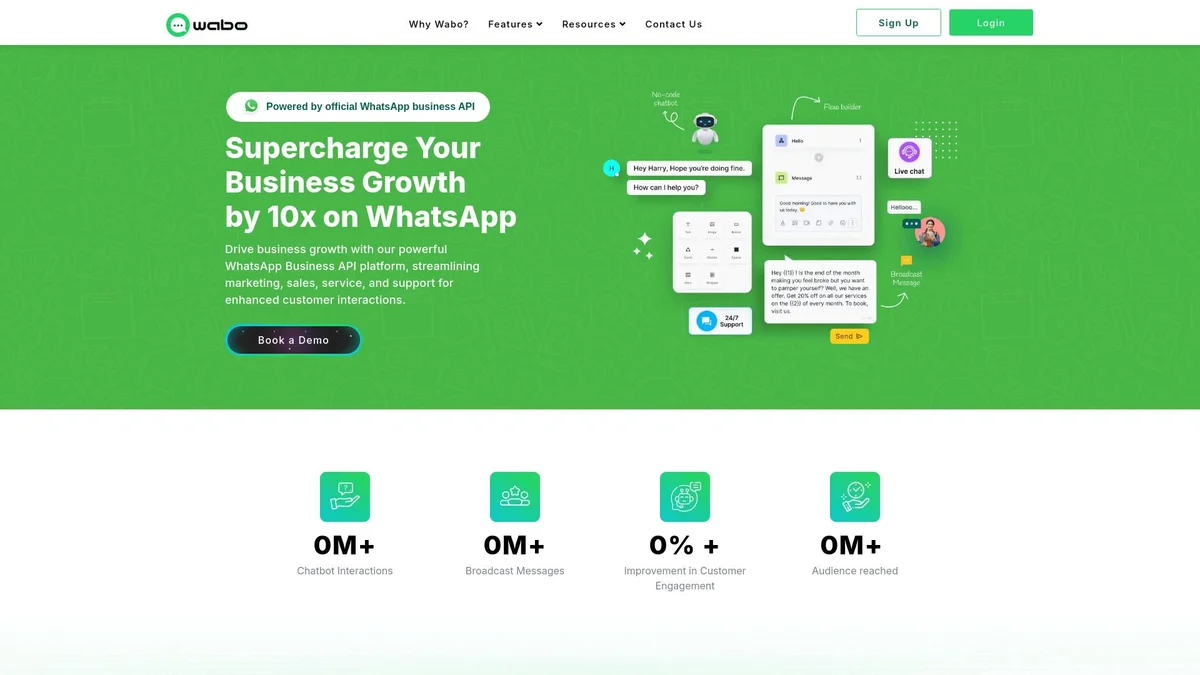 Wabo.ai leverages WhatsApp for seamless automation, lead generation, and customer interaction, enhancing your marketing strategy and support services effortlessly.