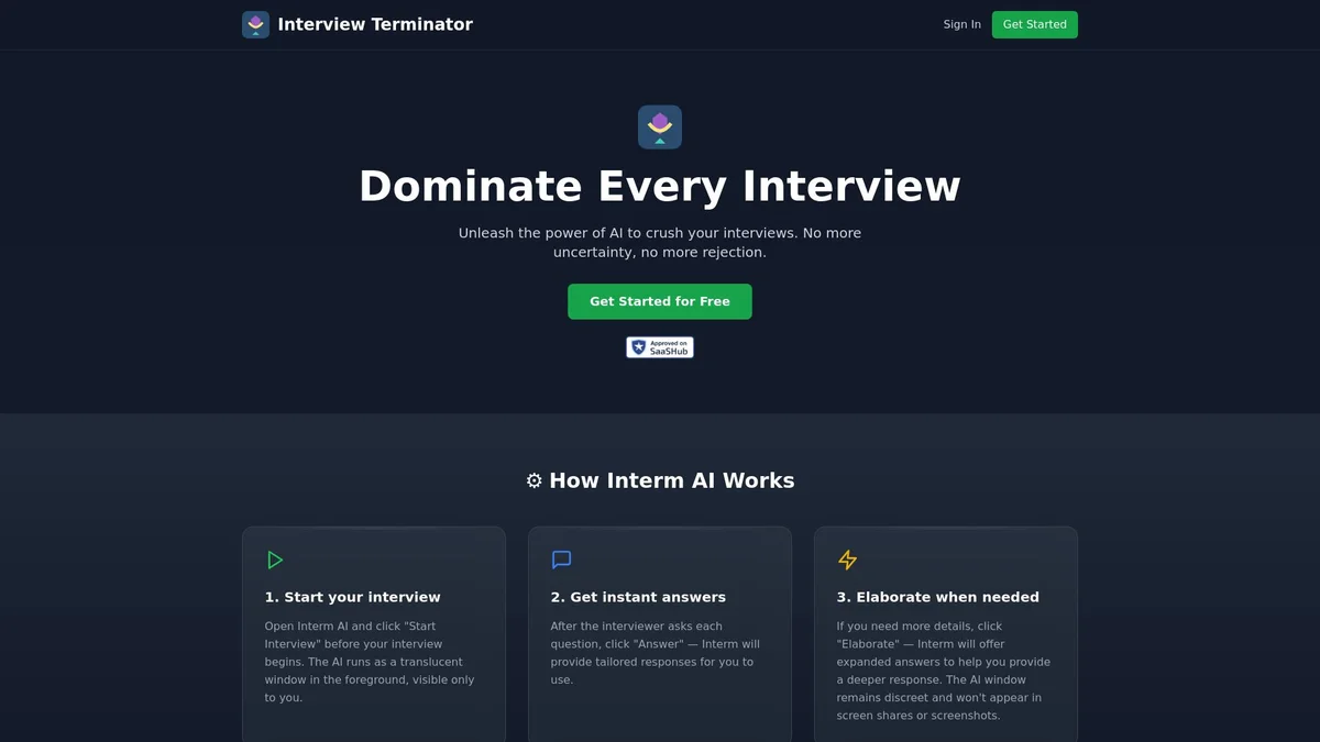 Get instant feedback and expert guidance for coding, behavioral, and system design interviews with Interm AI, your real-time interview coach.