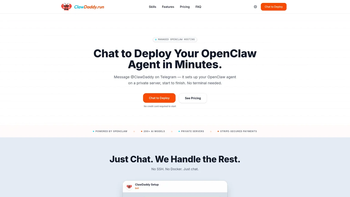ClawDaddy Managed Hosting simplifies deploying OpenClaw agents via Telegram, providing users with private servers in minutes without technical knowledge required.