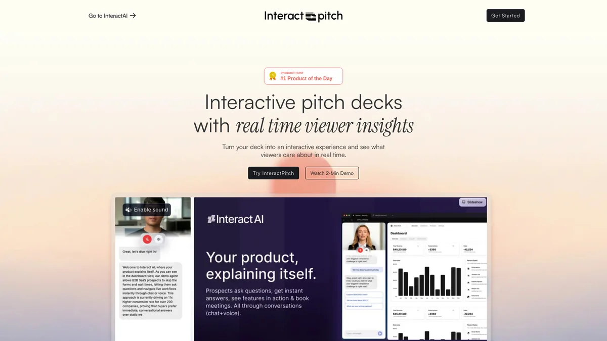 Interactpitch converts static pitch decks into engaging, interactive experiences, allowing viewers to explore content and ask questions in real time.