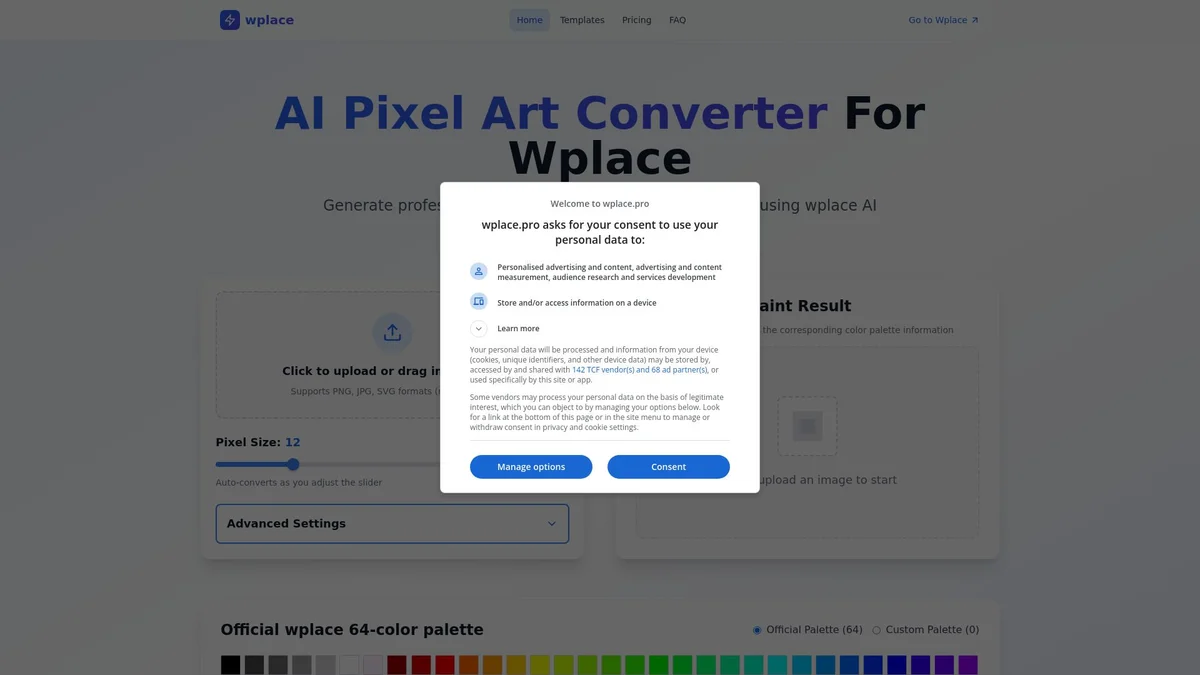 Effortlessly convert any image into vibrant pixel art with AI Pixel Art Converter For Wplace, perfect for artists and game developers alike.