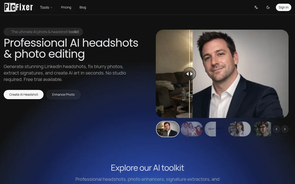Transform your photos and generate professional headshots effortlessly with PicFixer, the ultimate AI-powered photo editing toolkit for everyone.