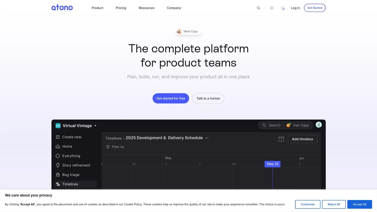 Atono enhances collaboration in product development, enabling teams to plan, build, deploy, and measure with confidence through integrated workflows and insights.