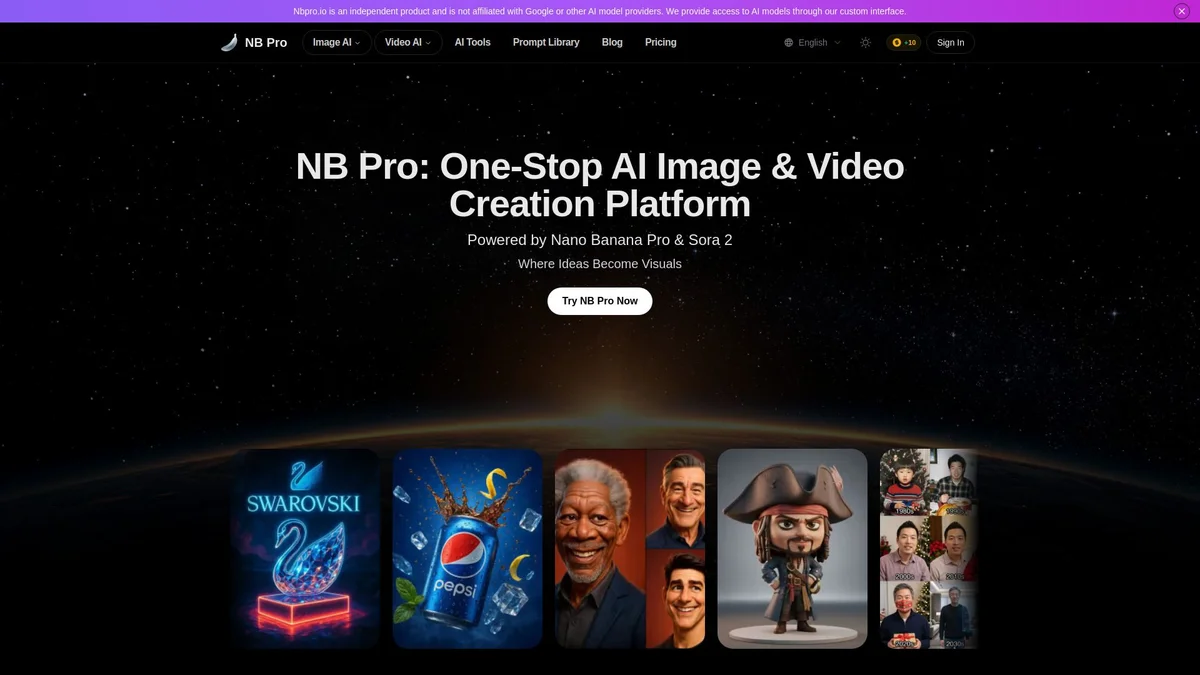 NB Pro is a comprehensive platform for creating stunning images and videos using advanced AI technologies, perfect for all your creative needs.