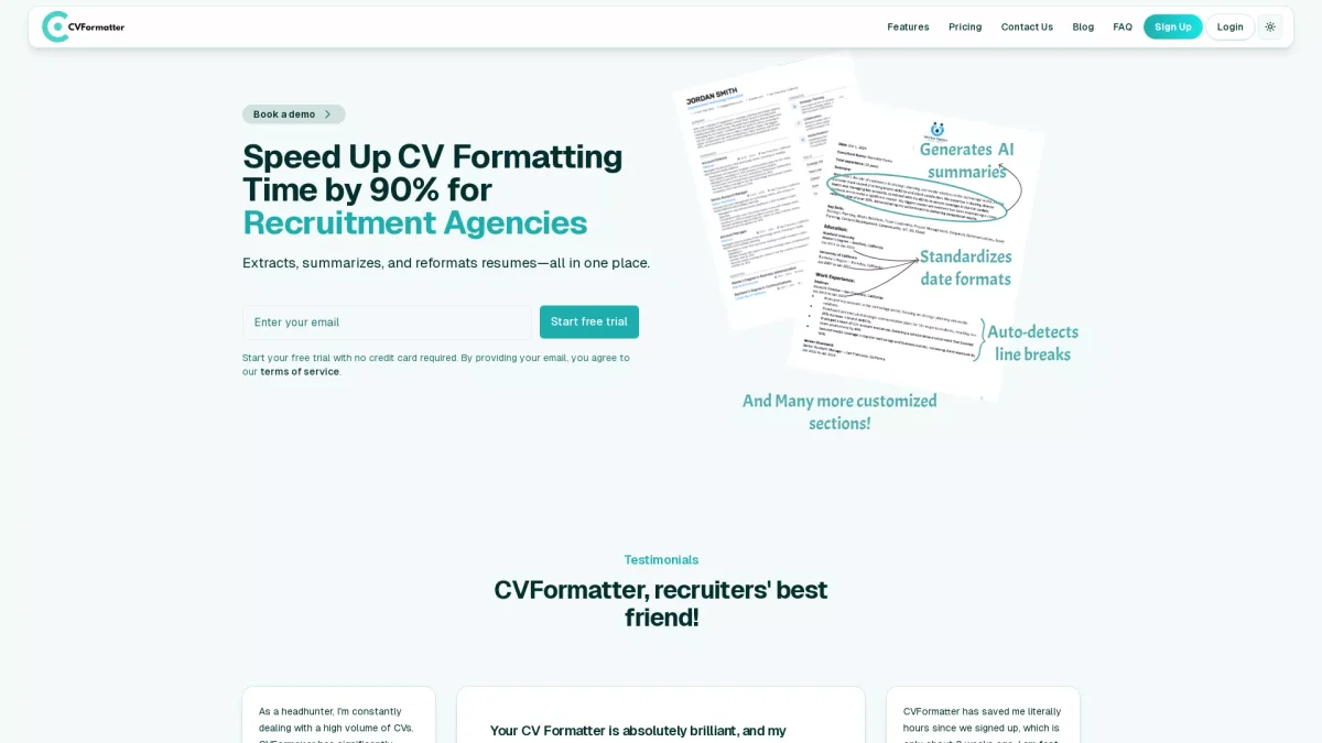 Transform chaotic resumes into polished, professional formats in minutes, allowing recruiters to focus on placements rather than formatting tasks.