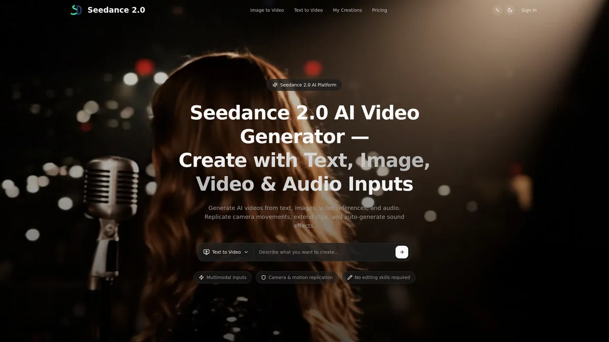Seedance 2.0 is an AI video generator that effortlessly converts text and images into high-quality videos, perfect for creators and marketers.