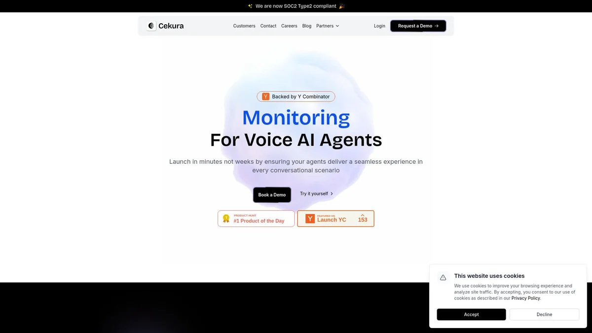 Cekura ensures conversational agents operate seamlessly by automating quality assurance testing for voice and chat interactions, enhancing reliability with rapid deployment.