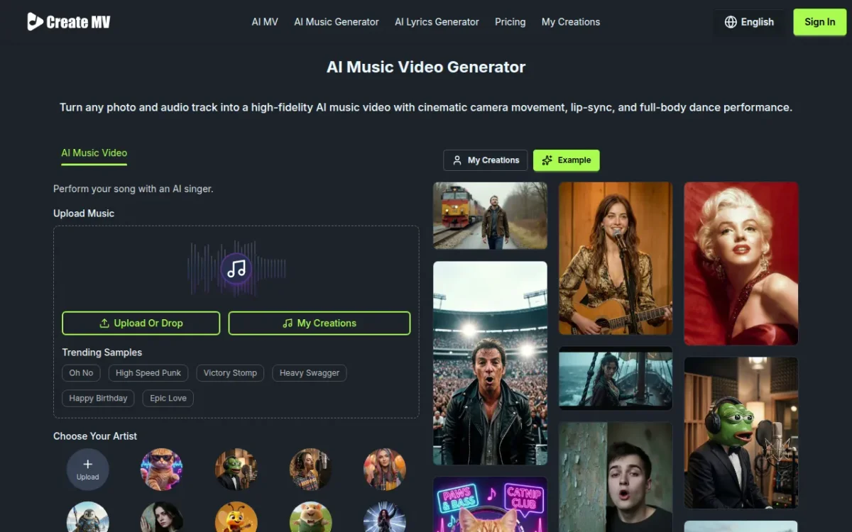 Create high-fidelity music videos with cinematic effects by simply uploading a photo and audio track. Experience dynamic visuals and performances powered by AI technology.