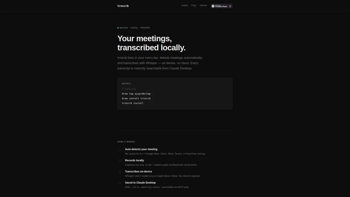 Effortlessly transcribe meetings locally on macOS with trnscrb, ensuring privacy and instant searchability for your notes.