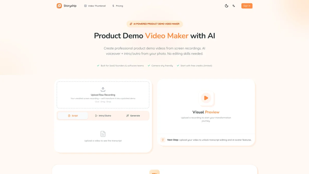 Create polished product demo videos from screen recordings without any editing skills, using AI voiceovers and customizable intros/outros tailored for SaaS founders and teams.