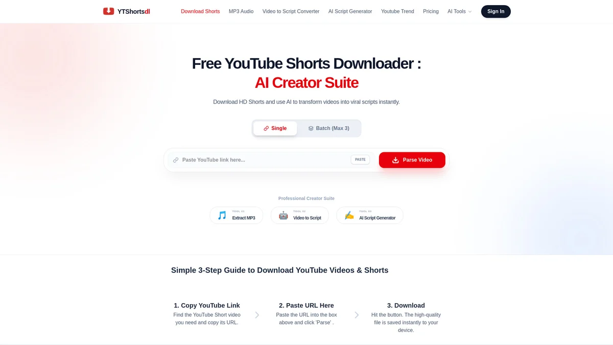 Download and transform YouTube Shorts into scripts or audio effortlessly with YTshortsdl.net, your all-in-one solution for content creators.