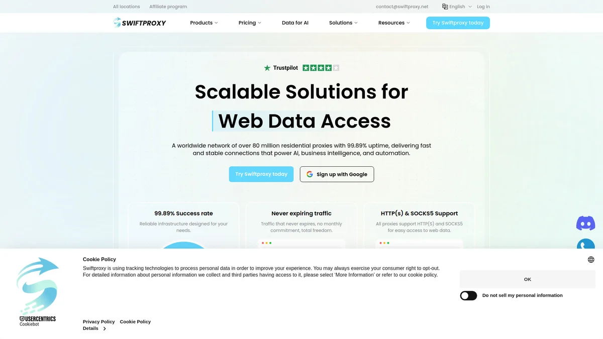 SmartProxyOrg provides over 100 million residential proxies for reliable web data collection and AI workflows, ensuring high success rates and optimized performance.