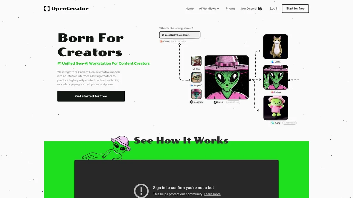 OpenCreator empowers content creators with a unified platform, integrating top-tier Gen-AI models to produce high-quality visuals and content efficiently.