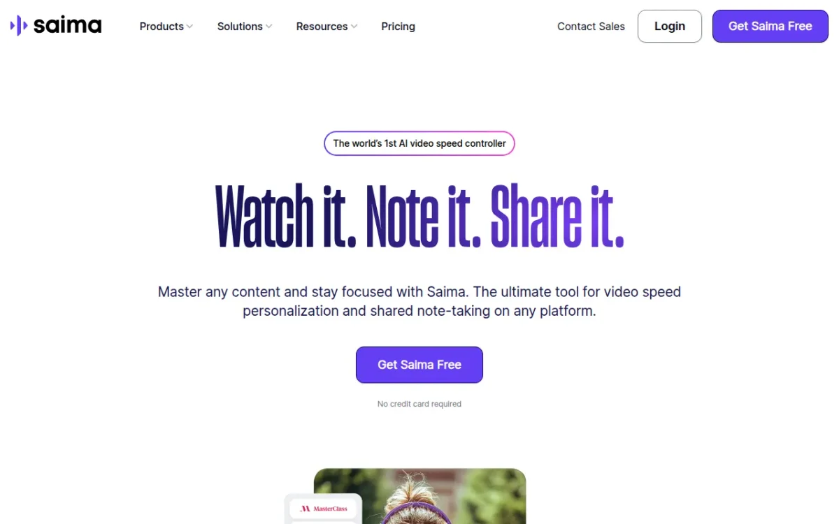 Saima is the world's first adaptive video speed solution, enhancing comprehension and focus while enabling personalized note-taking for any video content.