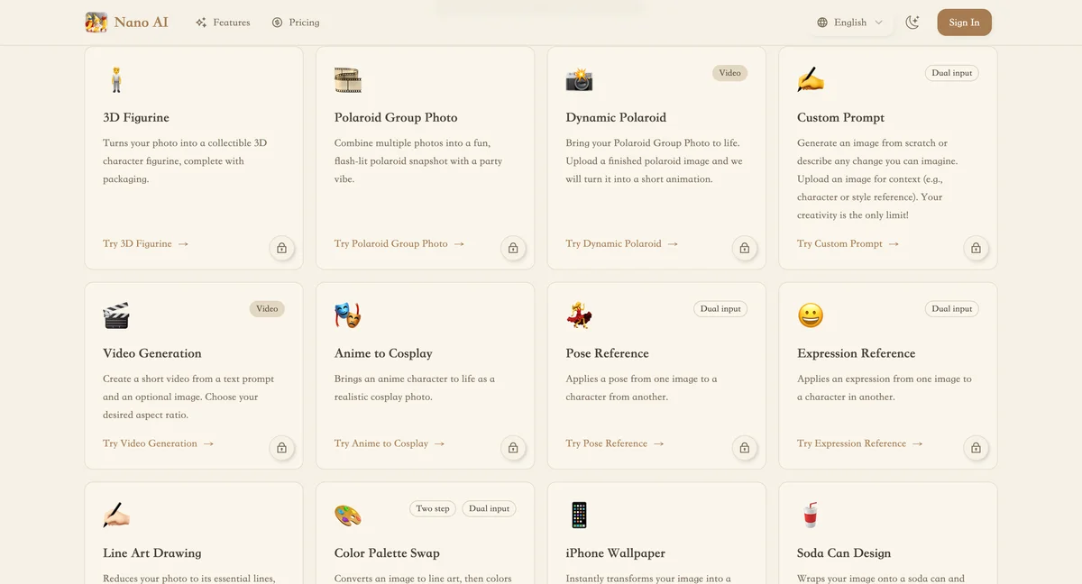 Nano AI offers over 30 guided Nano Banana effects, allowing users to transform images with ease and creativity, all without needing prompts or extensive editing skills.