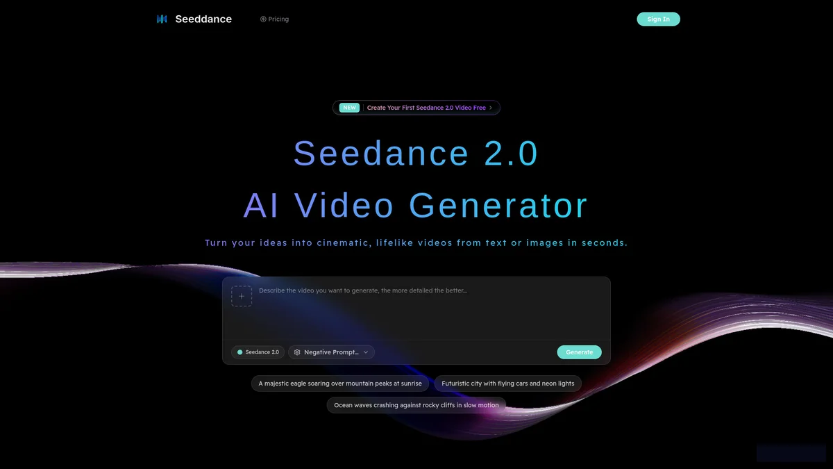 Seeddance AI-9 is an innovative video generator that transforms text and images into captivating video clips quickly and easily, enabling creators to bring their ideas to life.