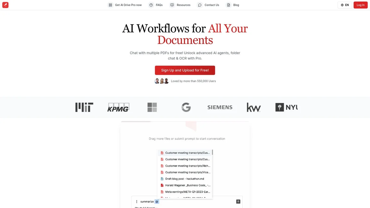 AI Drive empowers legal and professional workflows by transforming documents into intelligent conversations, providing instant answers, summaries, and insights with advanced AI models.
